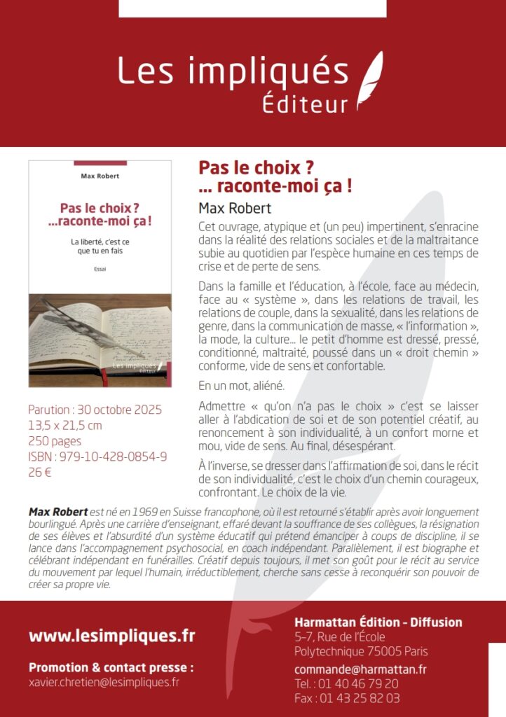 Admettre « qu’on n’a pas le choix » c’est se laisser aller à l’abdication de soi et de son potentiel créatif, au renoncement à son individualité, à un confort morne et mou, vide de sens. Au final, désespérant.